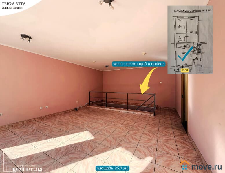 • подвал: есть, без окон, широкая лестница из холла у противоположной стены от входа